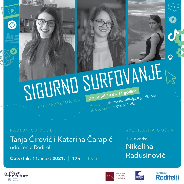 Fakultet političkih nauka, Agencija za elektronske medije i udruženje Roditelji organizovali su u četvrtak, 11. marta online radionicu Sigurno surfovanje internetom kojima je prisustvovalo ukupno 154 djece, uzrasta…