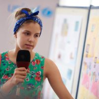 Četrnaestogodišnja Tea Raonić objasnila je kako je njena grupa obradila temu Birajmo šta gledamo: “Na našem radu smo predstavili srećnu porodicu i roditelje koji šalju svoju djecu u sobu, zbog toga što program koji gledaju nije prilagođen njihovom uzrastu i njihovi roditelji smatraju da to nije u redu da to gledaju, a neka djeca misle da oni nisu u pravu“.