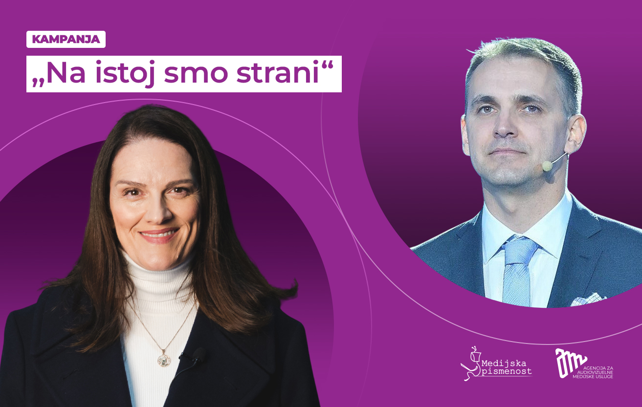 Kampanja Agencije za audiovizuelne medijske usluge (AMU) „Na istoj smo strani“, posvećena unapređenju medijske i digitalne pismenosti, okupila je javne ličnosti iz različitih oblasti društvenog života, a njen završni dio obilježili su glumica Dubravka Drakić i novinar i TV voditelj Ivan Maksimović. Kroz svoje učešće, dali su snažan doprinos javnom dijalogu o značaju kritičkog promišljanja, odgovornog informisanja i svjesnog korišćenja medijskih sadržaja.